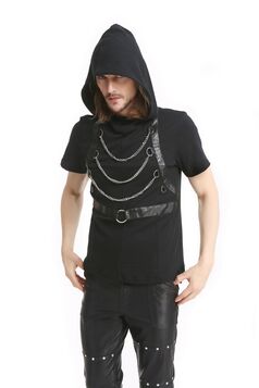 Votre avis sur : T-shirt a capuche avec chaines steampunk pour homme