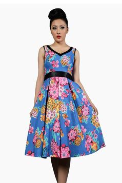 Votre avis sur : Robe Bleu Rockabilly Pin-Up Rétro Fleurs Pivoine