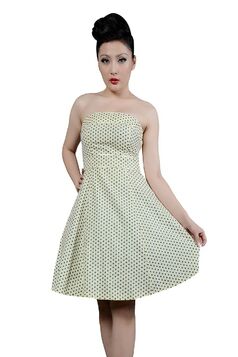 Votre avis sur : Robe Pin-Up Rétro 50's Rockabilly Beige Pois Vert