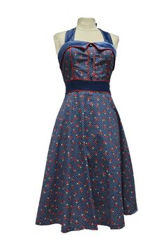 Votre avis sur : Robe Rockabilly 50's Rétro Marine petite fleur rouge